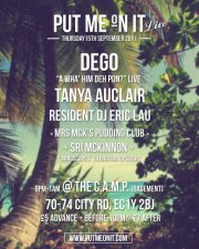 DEGO Live! @ Put Me On It at The C.A.M.P. @ The City Arts & Music Project, 70-74 City Road, London, Ec1y 2bj – Thursday 15th September 2011.