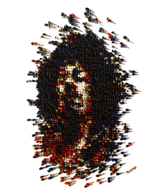 As Keaykolour’s “Artistic Ambassador” he follows up on previous pieces where he’s innovated with Hama beads, buttons (badges) and bottles of eye liner. This time round he has created eye popping multi layered images crafted from cut, torn, folded or sculpted paper. He confirms his commitment to re-using/re-cycling and continues to give us an insight into his undying passion for music, film, street styles and fashion.