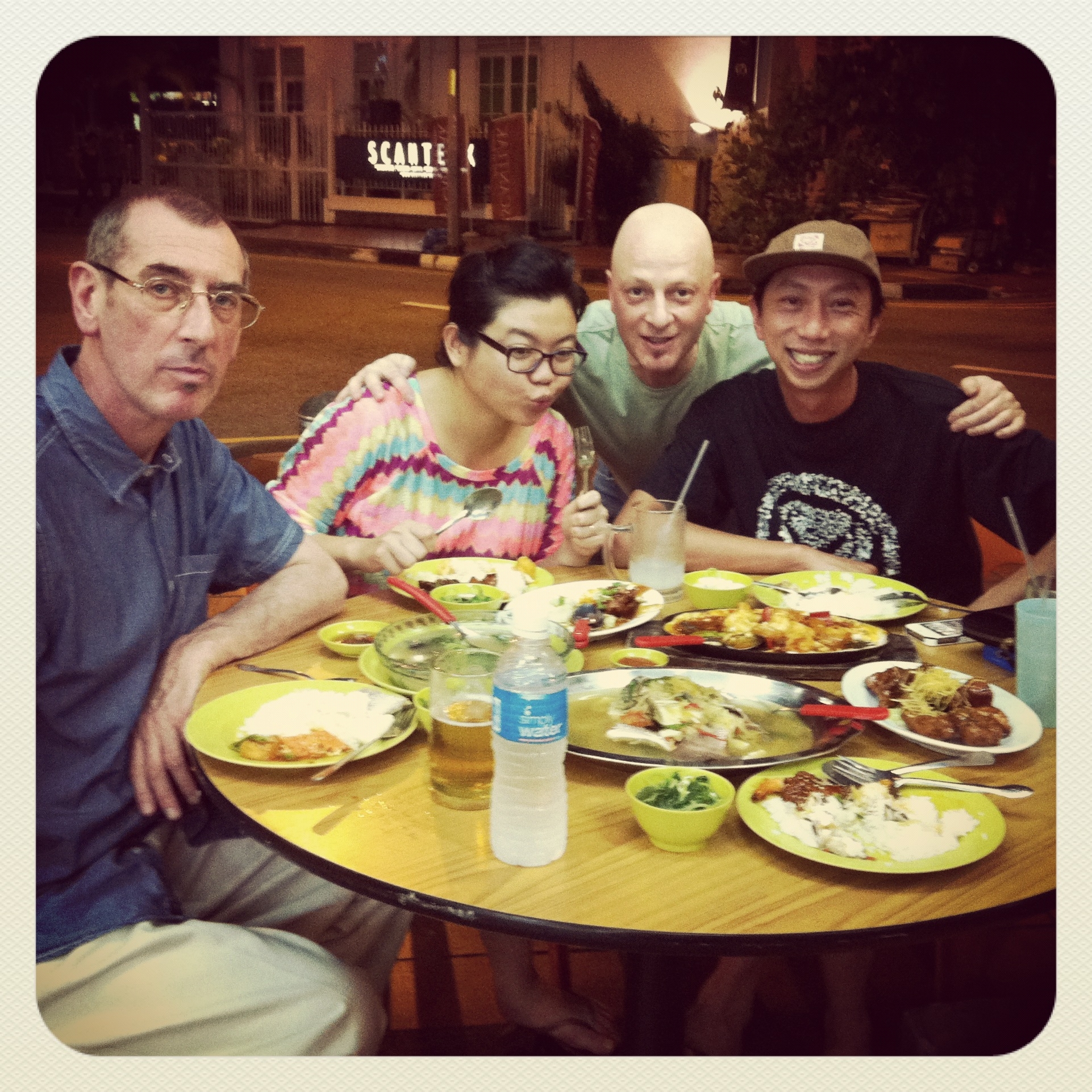 Prior to an opening at the adjacent Phunk Studio that evening we stopped off at a favourite street corner cafe to savour a few culinary delights that Singapore is famous for. There was fish… a snapper… prawns, pork and Marmite chicken!. Jonny and Cherri are knowledgeable hosts and they filled us in on all aspects of life in the city from ladies night to the machinations of the design and music worlds.