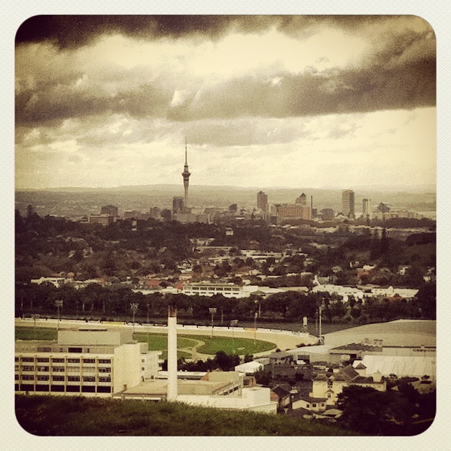 “OK… where the the tree?” I ask Tom only to discover it had been chopped down. The original tree on this sacred Maori site of Maungakiekie had been an indigenous pohutukaw and it was cut down by the colonists. Attempts were made to reintroduce indigenous trees to the hill but all failed. Only two pines survived and both were felled by Maori activists on two separate occasions.