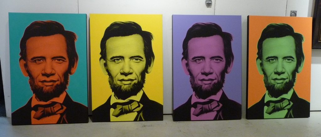 As time was tight we decided it was better to check Ron English’s exhibition at Webb’s Auction House sooner rather than later. Ron is one of the forefathers of NYC street art and famed for ‘liberating’ commercial billboards which were altered to broadcast political messages. Over three decades, much like Banksy and Shepherd Fairey, with whom he has collaborated and exhibited, his work continues to morph. The show consisted mostly of large laser prints and included his controversial Abraham Obama piece which was produced large scale for the 2008 election and provoked some serious debate but four years on I’m not sure what it’s saying.