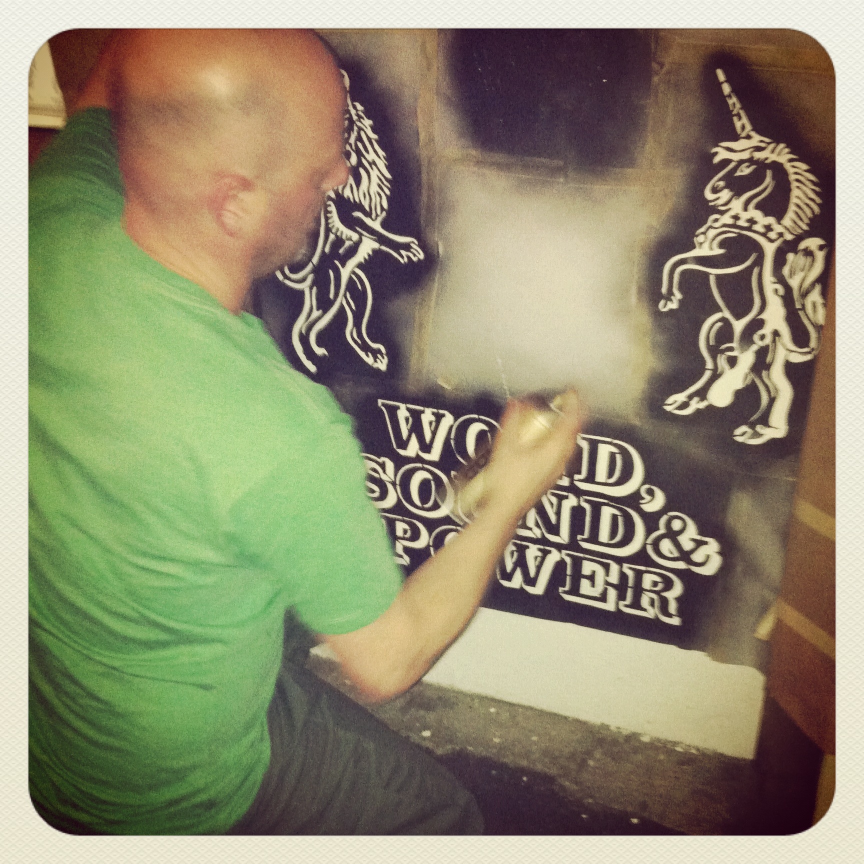 It’s like a less packed version of Soul Jazz in Soho. The ethos is the same and the range of music equally eclectic. There’s a fabulous Doze Green original painting in the coffee area at the front of the shop and Swift was planning add his artwork to the Brent’s handiwork in the re-vamped yard space. Once the boards were measured up, spray paints and pure turpentine secured we head across the road to eat, drink a couple of beers from the local micro-breweries and say hello to Cyan and Gareth Farry – our man at the British Council and instigator of this mission.