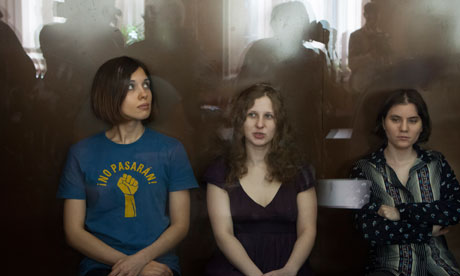 Sitting in the glass cage alongside her two fellow band members Maria Alyokhina and Yekaterina Samutsevich, Nadezhda Tolokonnikova wore a T-shirt emblazoned with a clenched fist and the the famous Spanish War slogan ‘No Pasaran’. It’s a trial that Dolores Gomez Ibarruri, famous as La Pasionaria would have been appalled at. These bold young feminist women are charged with hooliganism motivated by religious hatred following an anti-Putin performance in a Moscow cathedral.