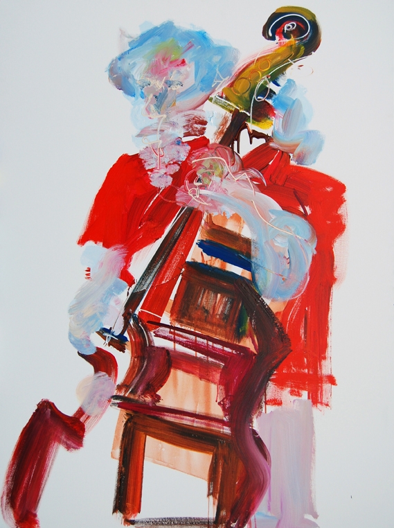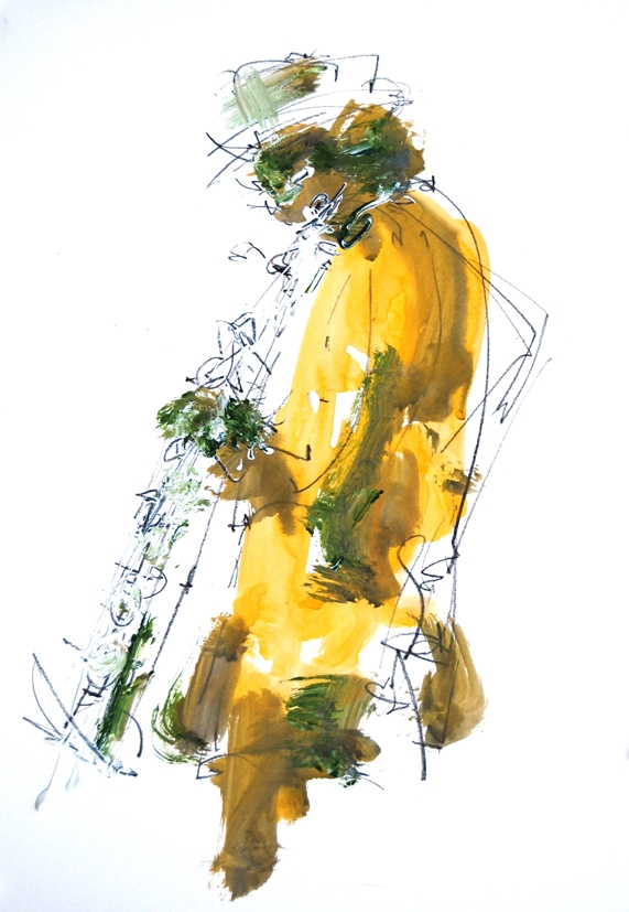 Don’t expect the scale and polish of my previous post (Shepard Fairey). This is a show done by mostly by musicians who are exploring another dimension to their musical practice and, in essence, it is an intimate affair. That said, if you’re in the Stoke Newington area over the weekend there will be a steady flow of performances and live painting in the Gallery. There’s a portion of interesting work to browse through and you may even feel like making a purchase. I myself was drawn to a spontaneous painted image of saxophonist Steve Williamson.