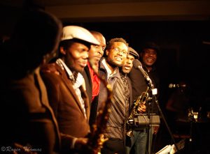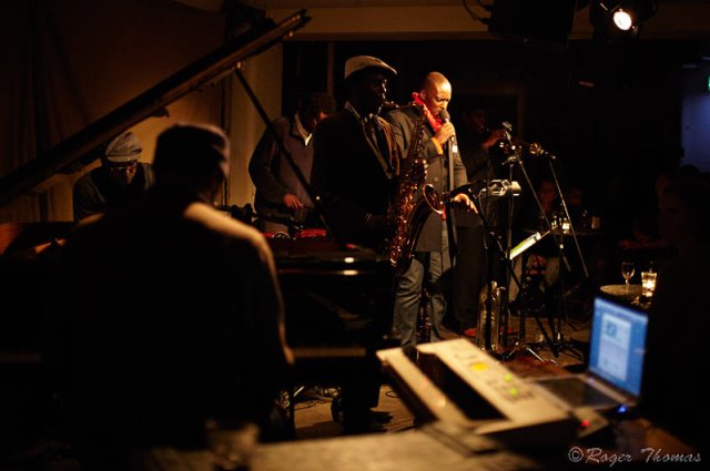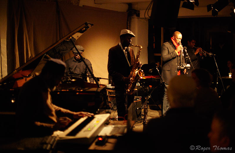 So, just to get this right. On this night. We have not one guest but four! Onstage we have Orphy Robinson – original Jazz warrior who tours the world with virtuoso violist Nigel Kennedy; Pat Thomas – an Oxford based master improviser with a legendary reputation across Europe; Cleveland Watkiss – an original Jazz warrior and one-time member of the Metalheadz crew; Steve Williamson – an original Jazz Warrior and the most innovative saxophonist of his generation; Byron Wallen – a trumpet player who plays with Jack De Johnette, Andrew Hill and Mulatu Astatke and whose knowledge of global musics is Deep!and finally, a new generation marimba master, Corey Mwamba.