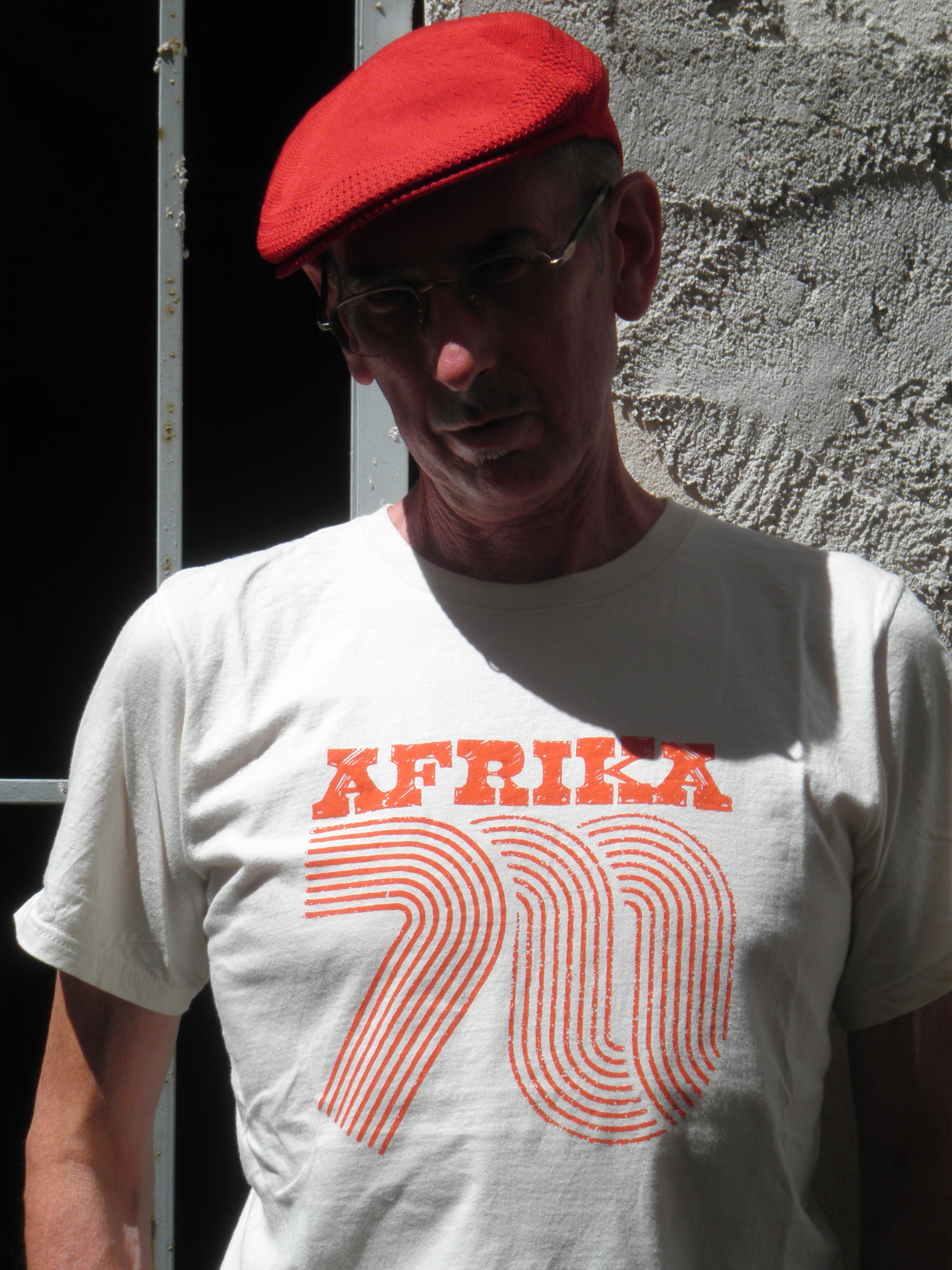 While it might look like a bit of a vanity overload I couldn’t resist popping off some shots of the stereophonic-supply Africa70 tees while I was in Greece….the light was intense and fashion brands spend thousands to doing shoots in the Caribbean or the Mediterranean … so why not? Having just read Tony Allen’s excellent autobiography where he talks in depth about his time with Fela and Afrika70 and also recalling a story that the late great Art Ensemble trumpet player Lester Bowie told me about arriving at Kalakuta Republic…