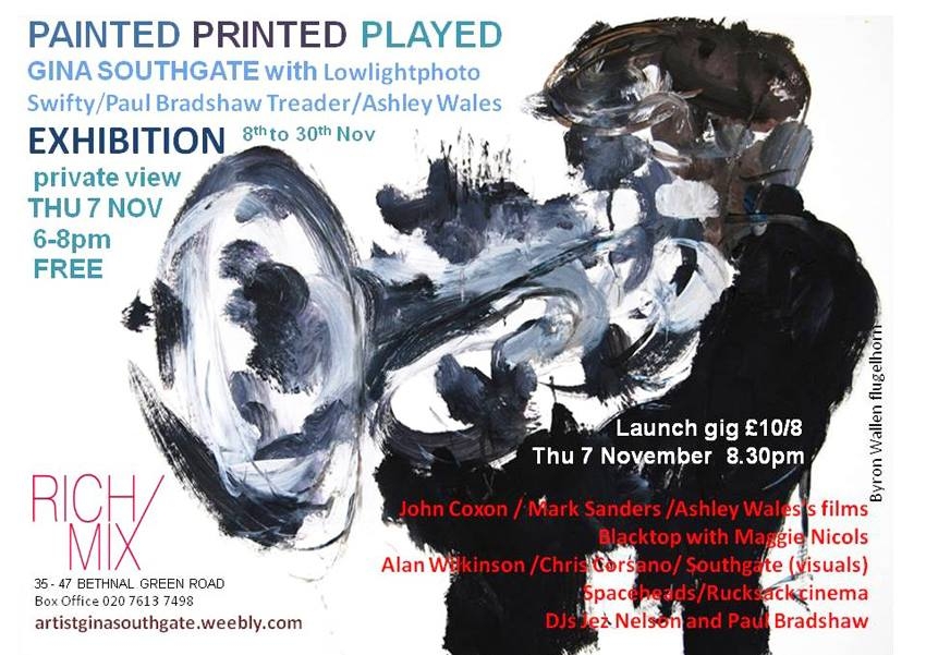 PAINTED PRINTED PLAYED! A VITAL SESSION… THIS THURSDAY 7th November… Swifty & I will be representing at the opening of this collective exhibition event, conceived and curated by freedom loving painter Gina Southgate.