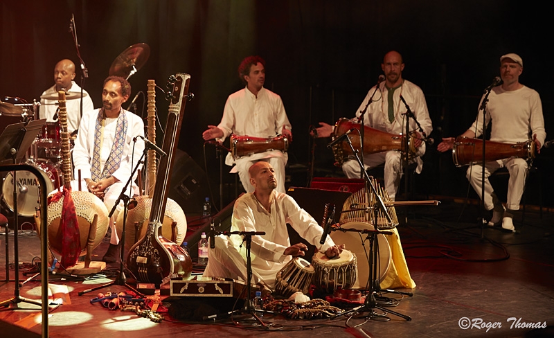 The concept of “a love supreme” that emanates from God is alive throughout the whole suite. The trio of bata drums in the ensemble are not simply percussion. They were not brought in to simply create extra colour and rhythmic textures. They reflect Coltrane’s final recording where he collaborated with Nigerian master drummer Olatunji and the invocations – chants – included in the piece were made to specific orishas (Shango /Yemaya /Obatala) in the Ifa religion. They connect Coltrane to his west African roots while Ansuman Biswas ‘ contribution and Juwon Ogungbe’s spoken invocation in the opening part are based on Alice Coltrane’s devotion to both her husband and the teachings of Hindu Swami Sachidananda. Personally, I love the opening which unites the santoor with the kora . It’s meditative, moving and it sets the vibe for the whole performance.
