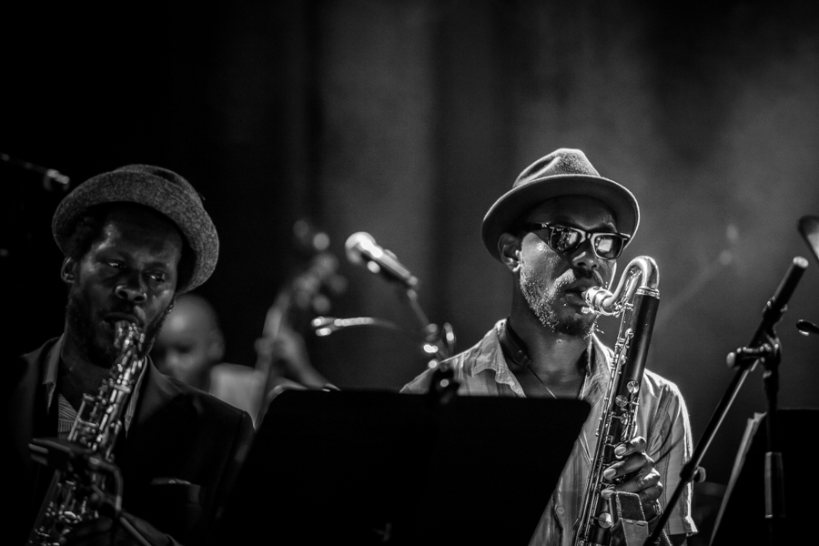 The opening sets of each performance commenced with Byron Wallen invoking the spirit of Buddhism and the Himalayas on his Tibetan horn. A Gnawa inspired duet between the trumpet playing Wallen and bassist Neil Charles followed and it united two compositions, ‘Spirit Of Bilal’ and ‘Battle’. Next up was a fabulous extended interpretation of Joe Henderson’s ‘Earth’ featuring Tori Handsley on harp, Rowland Sutherland on classical flutes and Emi Watanabe on Japanese flutes. A bumping homage to Sun Ra closed the opening set, included a dangerous vibes solo from Orphy Robinson, and paved the way for the main piece.
