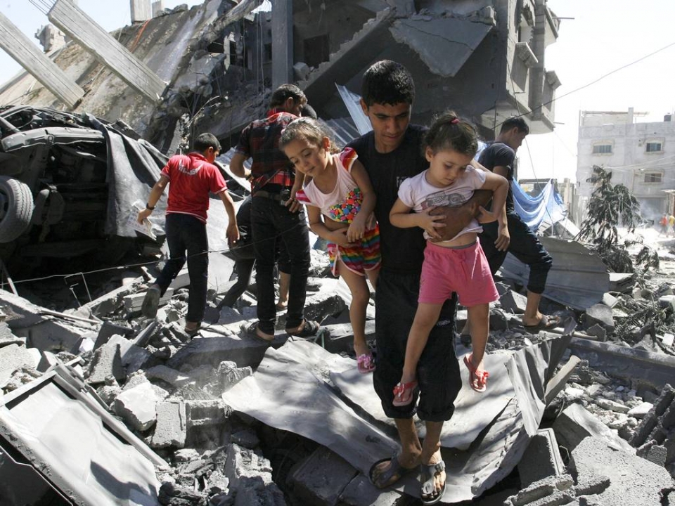Above: the destruction in Gaza City’s Shijaiyah neighborhood, Saturday, July 26, 2014