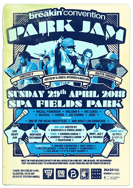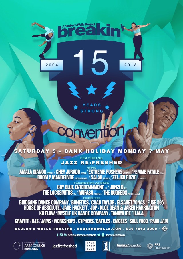 Nurturing young talent remains a key motivation for Jonzi – “we were all young once, and we all felt that we needed doors opened for us…it’s important that we’re constantly aware of what young people are doing and how we can provide platforms for them.” As for Jonzi himself, the drive to create remains strong, and he is devising a new work to be performed at this year’s Breakin’ Convention, a poem whose subject matter he is keen to keep under wraps. He does, however, offer this hint: “all my work is political, and if the arts aren’t political, then we’re gonna have to rely on politicians and we can’t do that now, can we?” The ambition inherent in this statement is evidence that there remains in Breakin’ Convention a desire to push the boundaries of what hip-hop, contemporary dance and live music can address, how it can be expressed and who it can speak to.