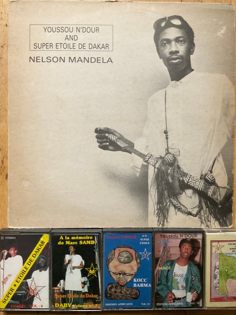 One of the most exciting and explosive live sets I experienced in the mid-eighties was Youssou N’Dour and the Super Etoile De Dakar at the short lived Venue in central London. Youssou was around 26 at that time and the mind blowing music they played was called mbalax – a music with sacred origins. His voice was astonishing and his well drilled band was underpinned by the rhymically complex exchanges between the tama / talking drum of Assane Thiam and the staccato crack of the sabar drums. Youssou was in the process of establishing himself globally as the voice of young Senegal.